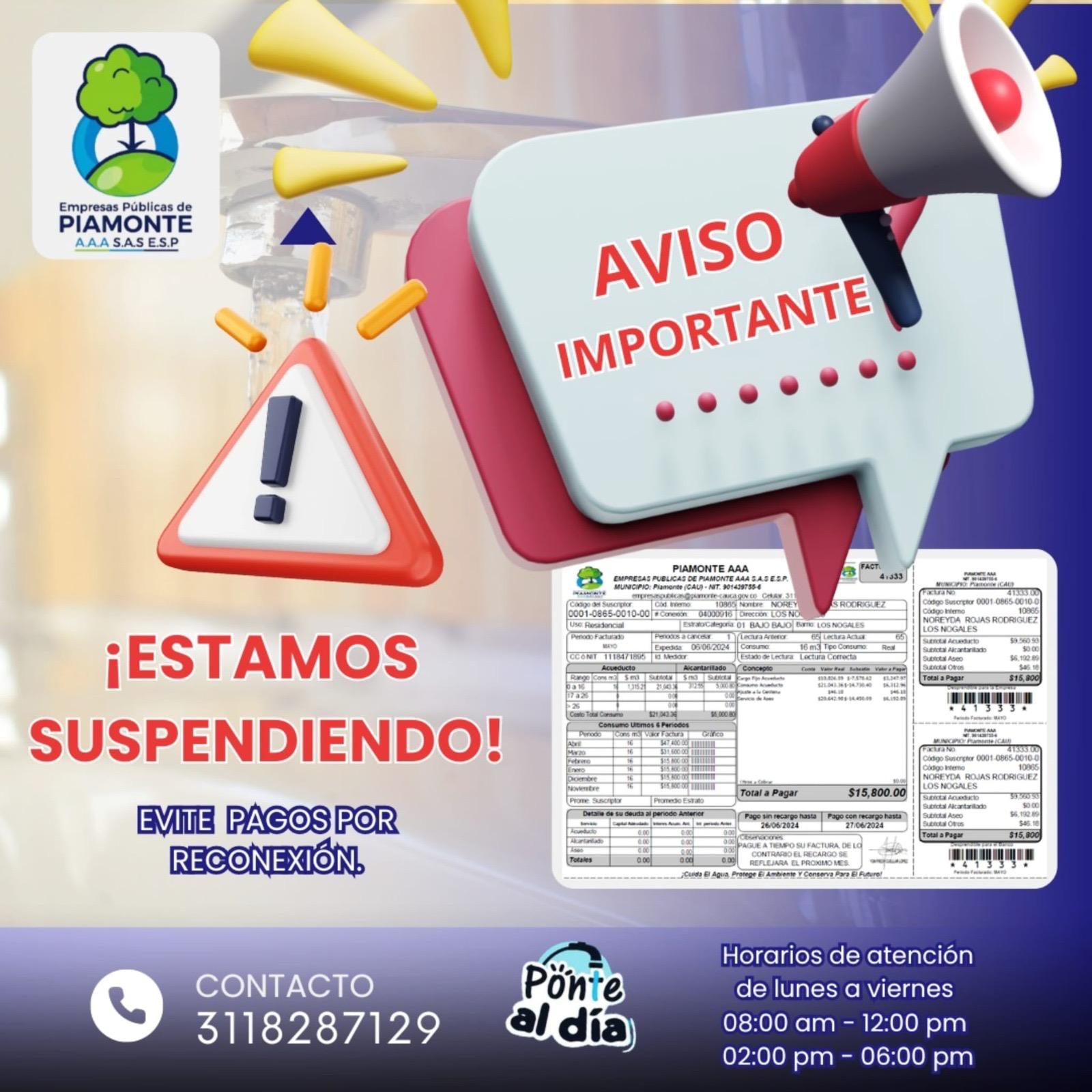 Aviso de Suspensión por no pago oportuno